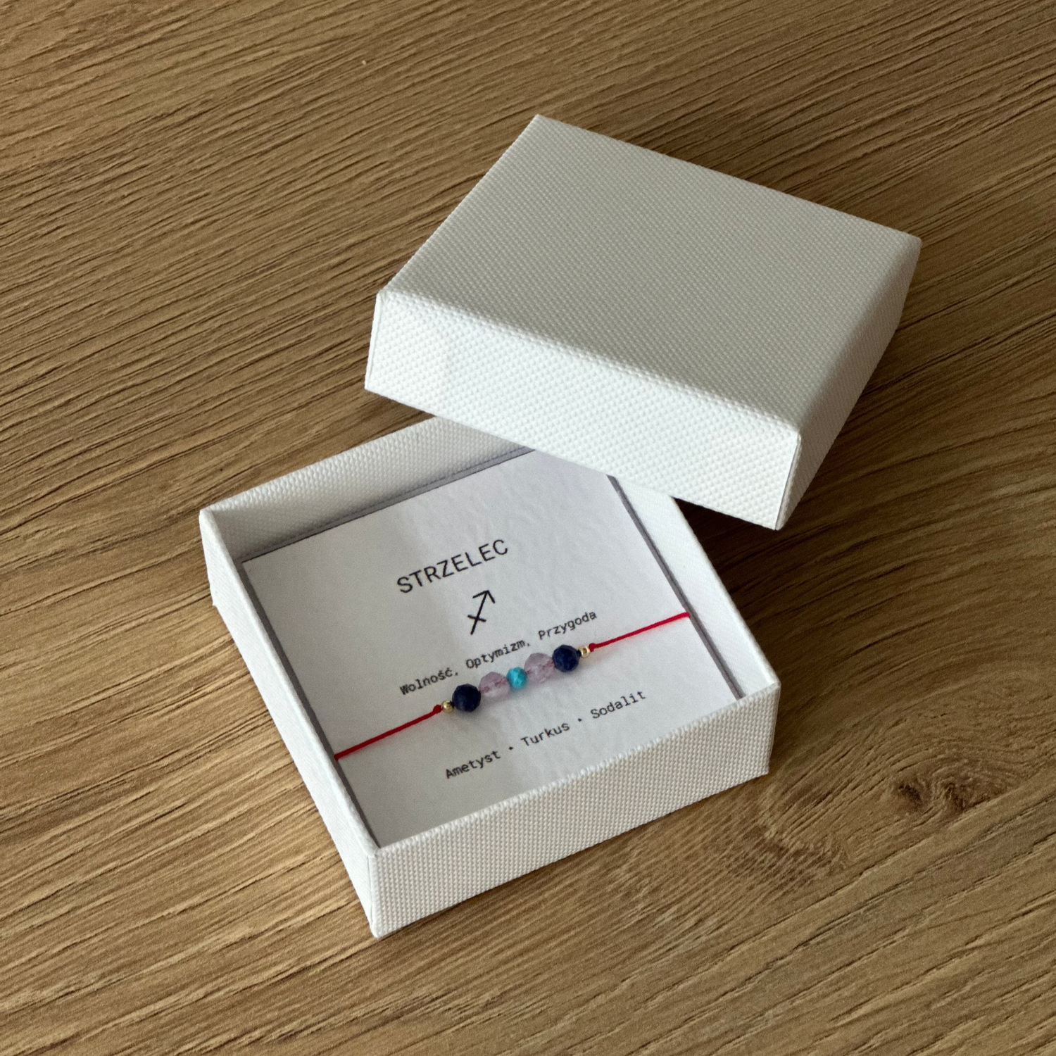 Bransoletka z naturalnych kamieni – ametystu, turkusu i sodalitu – stworzona dla optymistycznych i pełnych energii Strzelców. Wprowadza duchową głębię, chroni w podróżach oraz wspiera klarowne, logiczne myślenie. Idealny talizman dla osób kochających wolność i rozwój.