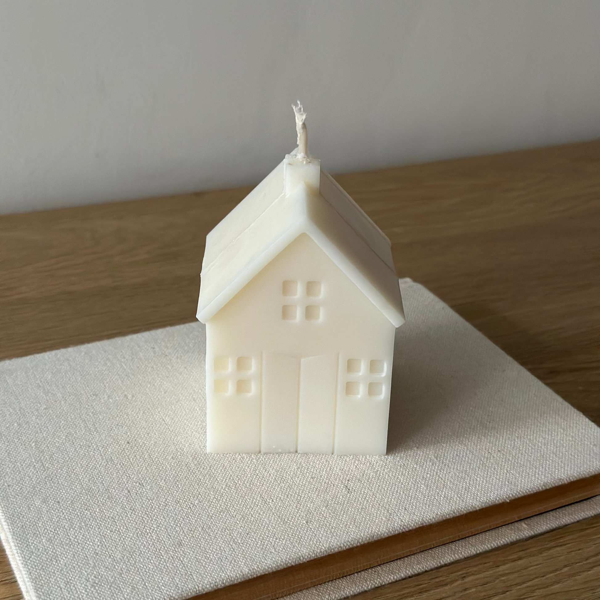 Mała świeca sojowa w kształcie domku – subtelny akcent dekoracyjny, wprowadza przyjemną atmosferę i nastrojowe światło do wnętrza.