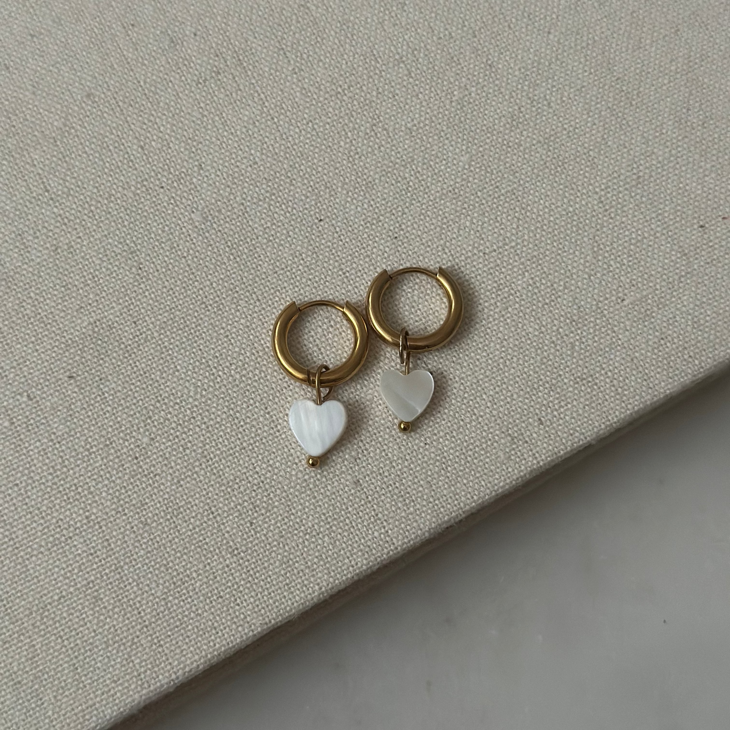 Caéla Gold to kolczyki stworzone z myślą o tych, które cenią połączenie klasyki z subtelną nutą nowoczesności. Zawieszone na pozłacanym biglu serce z masy perłowej przyciąga uwagę swoją łagodną formą i naturalnym połyskiem.