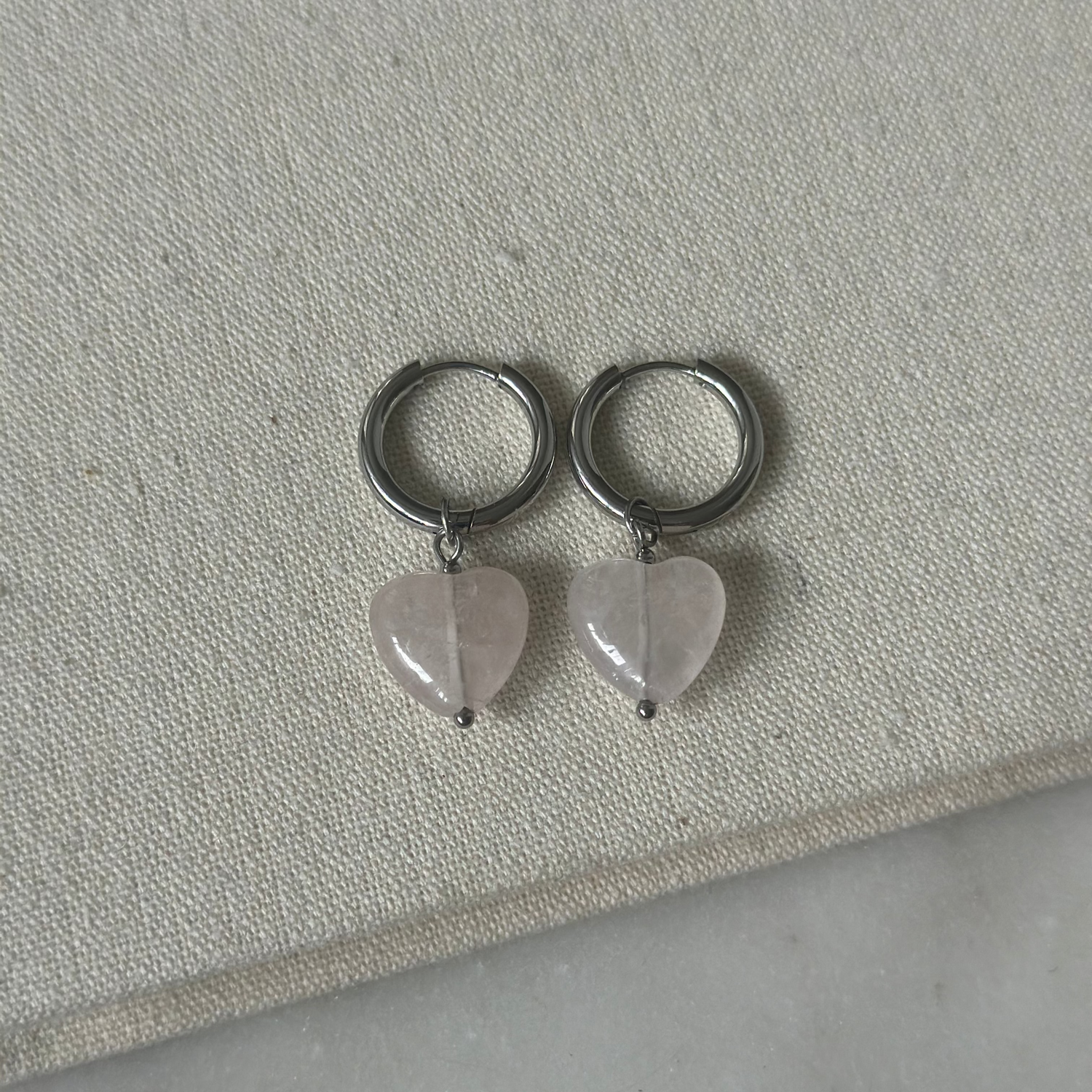 Eleganckie kolczyki z różowym kwarcem w kształcie serca. Kamień naturalny wspiera otwartość serca, harmonię emocjonalną i przyciąga pozytywne relacje. Subtelny design sprawia, że idealnie pasują na co dzień i na wyjątkowe okazje.