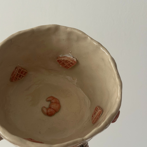 Rozpocznij dzień z wyjątkowym kubkiem pełnym uroku! Ręcznie robiony kubek z goframi i croissantami to prawdziwa uczta dla oczu i doskonały wybór na poranne picie kawy czy herbaty. Każdy kubek jest niepowtarzalny, dzięki detalom, które nadają mu wyjątkowy charakter.