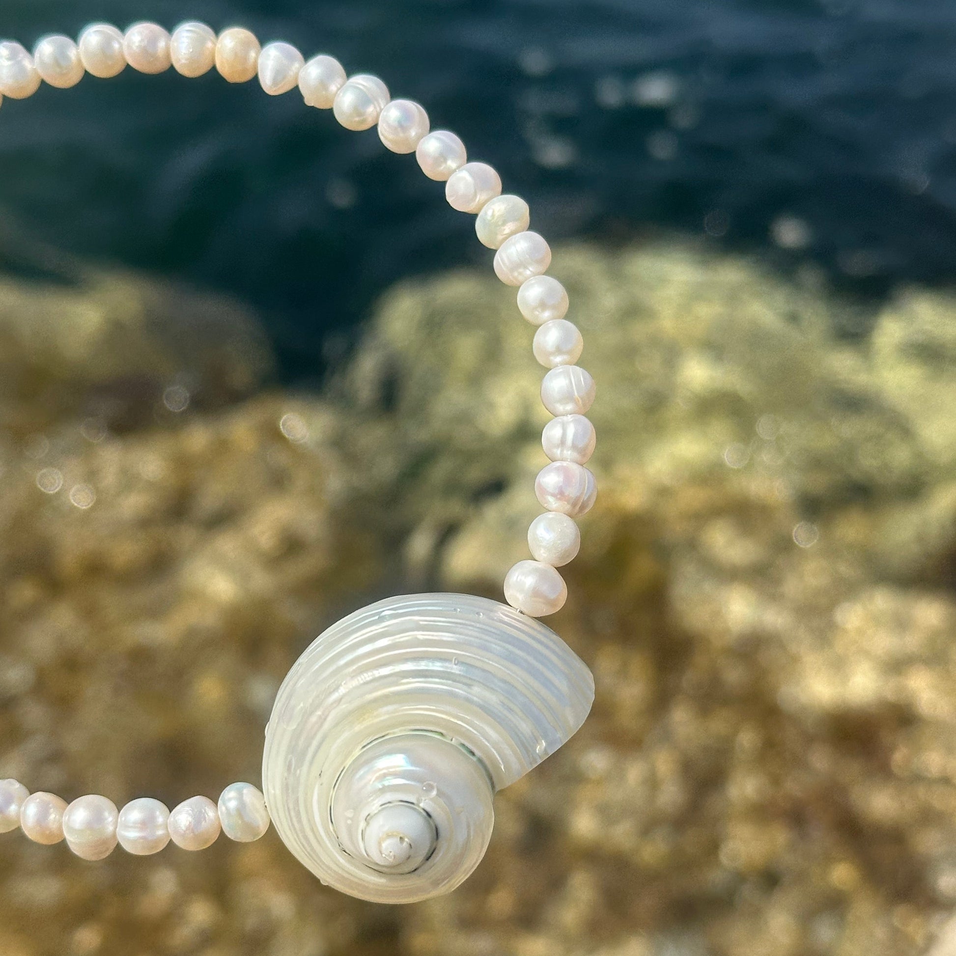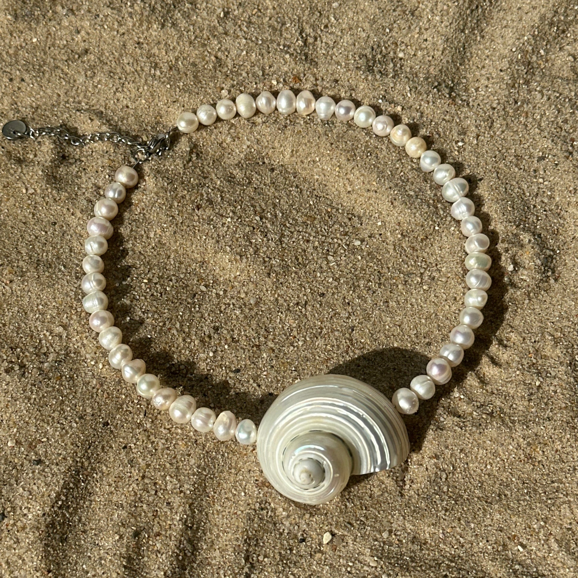 Naszyjnik z perłą i muszlą o subtelnej, ale wyrazistej formie. Klasyczny, ale z charakterem – idealny zarówno na co dzień, jak i na wyjątkowe okazje.