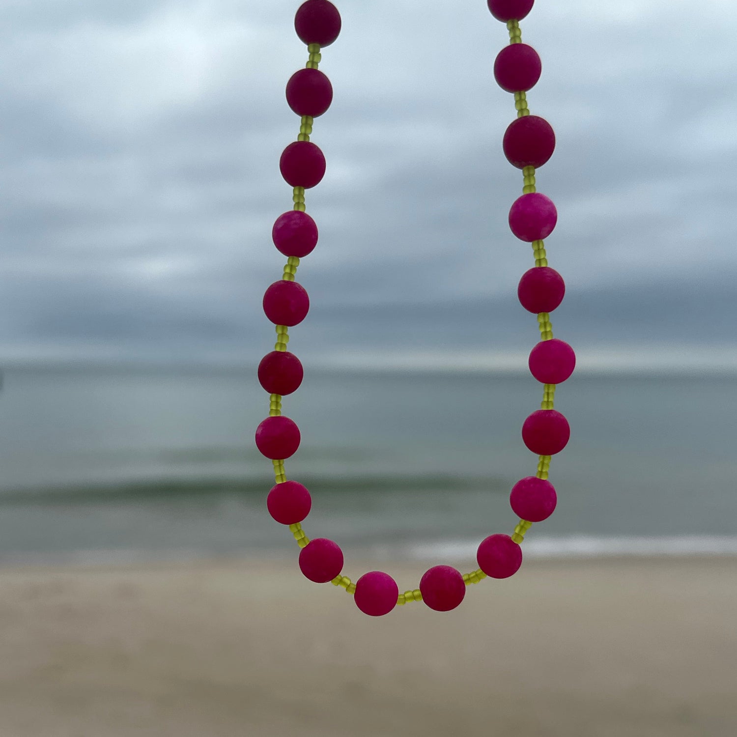 Roselle to wyjątkowy choker, w którym intensywny malinowy jadeit spotyka się ze świeżością zielonych koralików, tworząc harmonijną i pełną życia kompozycję. Malinowy jadeit symbolizuje pasję, odwagę i siłę, a zielone koraliki dodają równowagi oraz łączą z naturą i odrodzeniem. Ten choker to nie tylko stylowy dodatek, ale również talizman wspierający energię i pewność siebie każdego dnia.