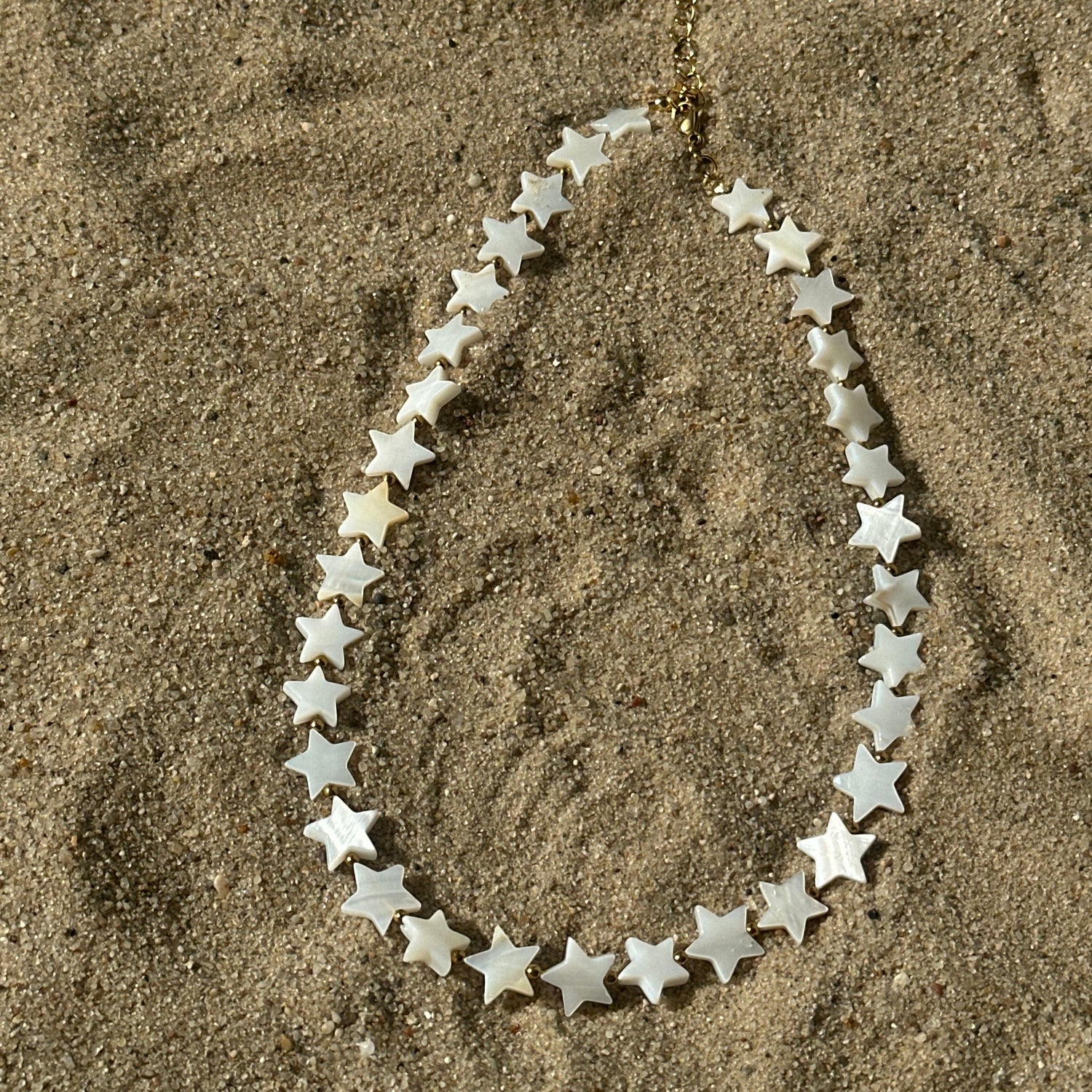 Naszyjnik z masy perłowej w kształcie gwiazdek. Delikatny, kobiecy i pełen subtelnego uroku.