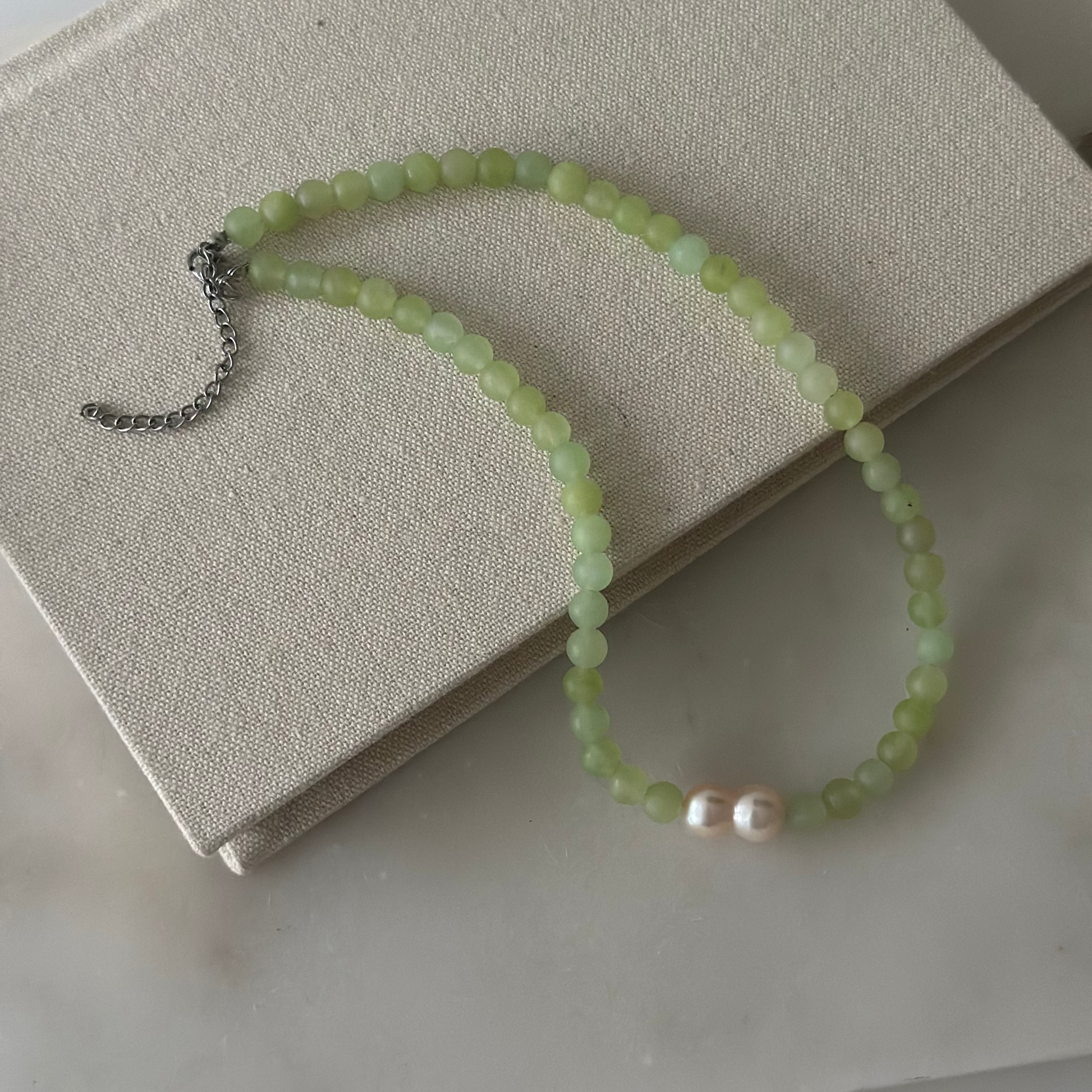 Verda Pearl to naszyjnik, który łączy w sobie naturalną harmonię zielonego matowego jadeitu z wyjątkowością nieregularnej perły. Symbol równowagi i autentyczności na co dzień.