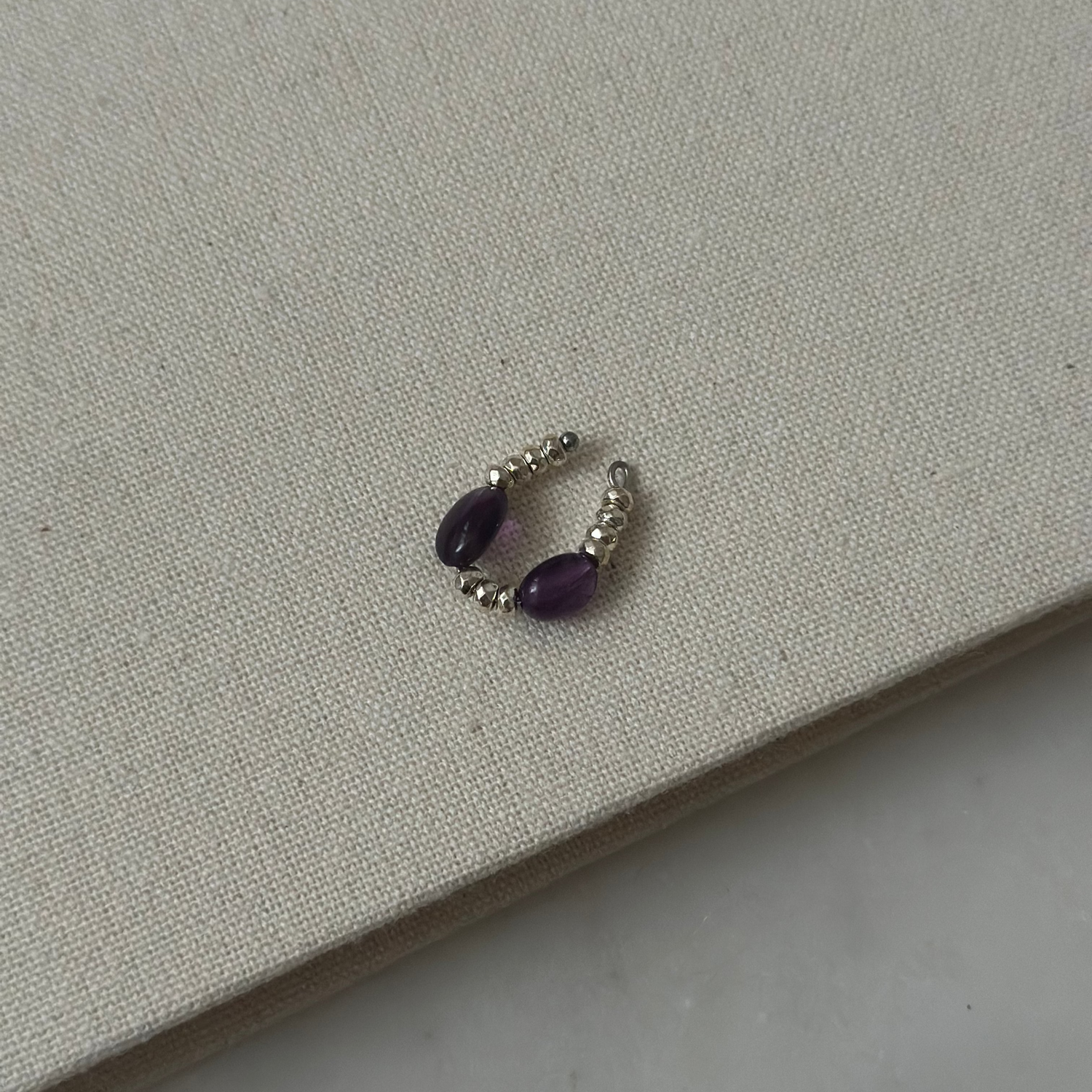 Nausznica Mystéra to zmysłowe połączenie fasetowanego hematytu i surowych bryłek ametystu – harmonijna biżuteria o duchowej głębi, która subtelnie przyciąga uwagę i emanuje spokojem.