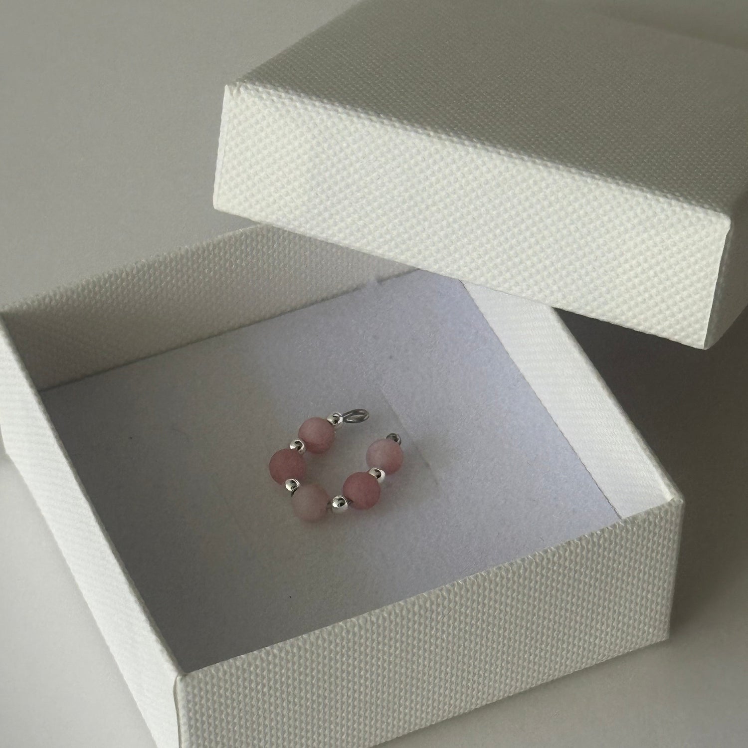 Nausznica Rose Harmony łączy subtelny różowy agat z siłą hematytu, tworząc lekki akcent, który pasuje do różnych stylizacji, dodając im wyjątkowego charakteru.