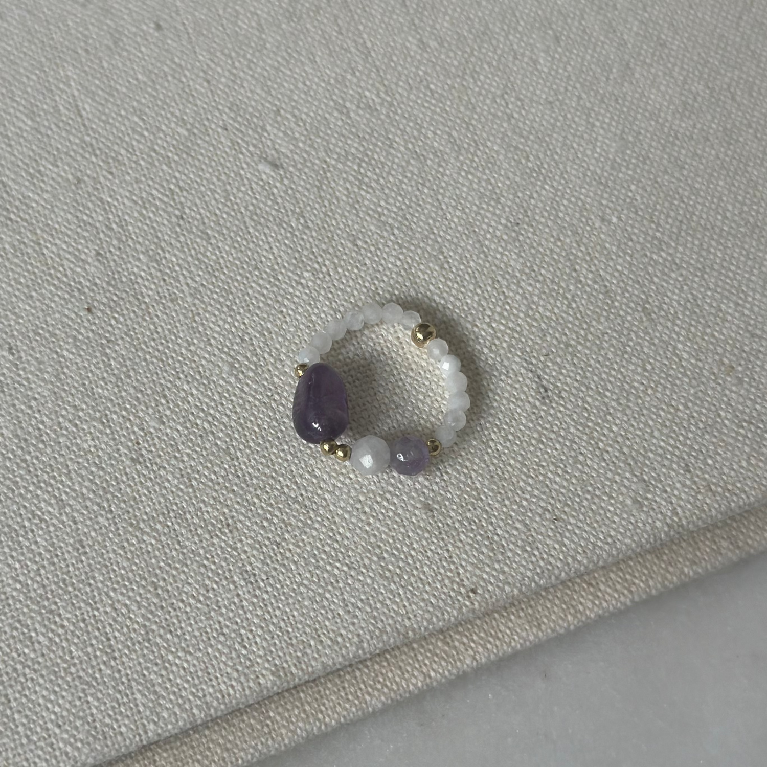 Pierścionek „Magia Intuicji” z naturalnymi kamieniami: ametystem i kamieniem księżycowym. Wzmacnia intuicję, harmonizuje emocje i dodaje duchowej mocy. Elegancki design łączy piękno naturalnych minerałów z subtelnym stylem, czyniąc go idealnym dodatkiem na co dzień i wyjątkowe okazje.