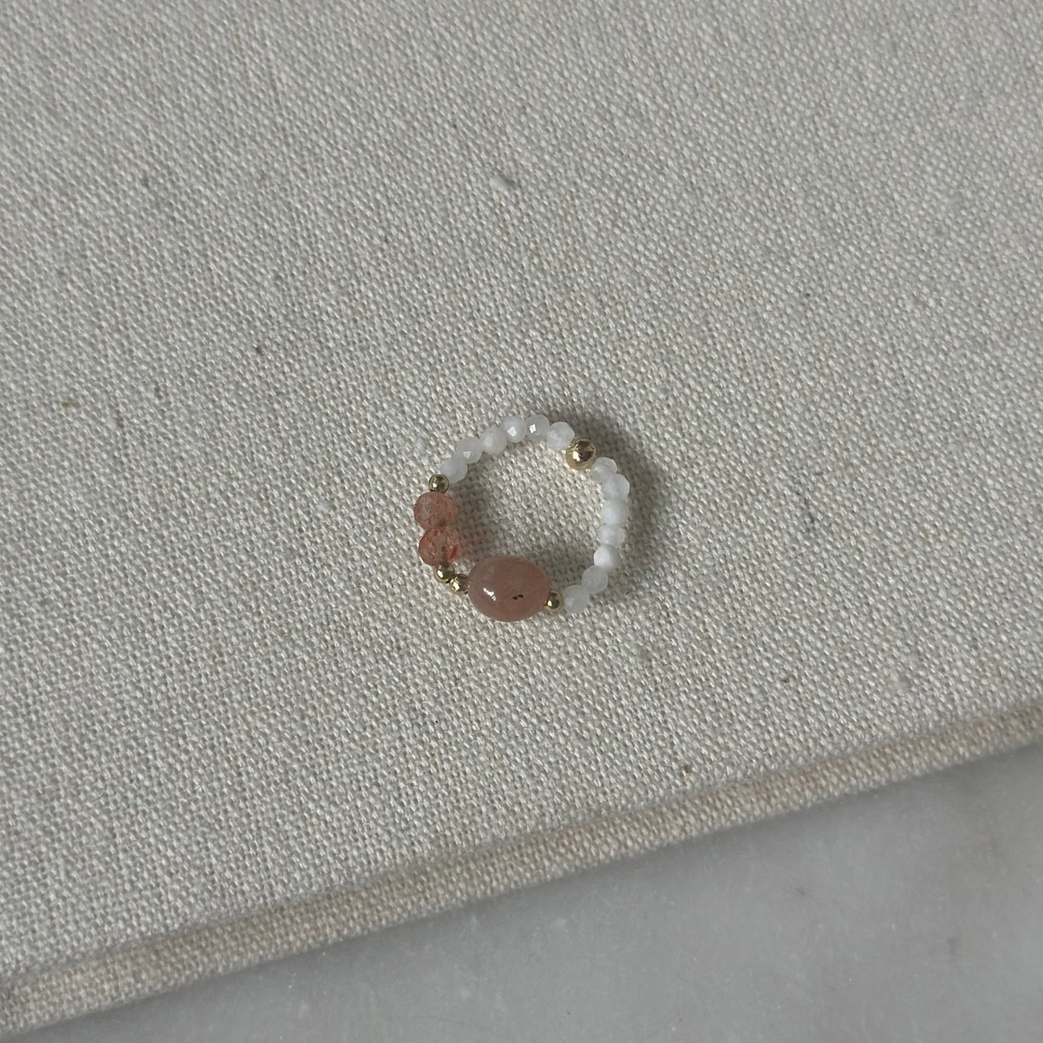 Pierścionek Mocy i Harmonii z naturalnym kamieniem słonecznym i kamieniem księżycowym. Talizman radości, odwagi i emocjonalnej równowagi, który dodaje energii i wspiera intuicję.