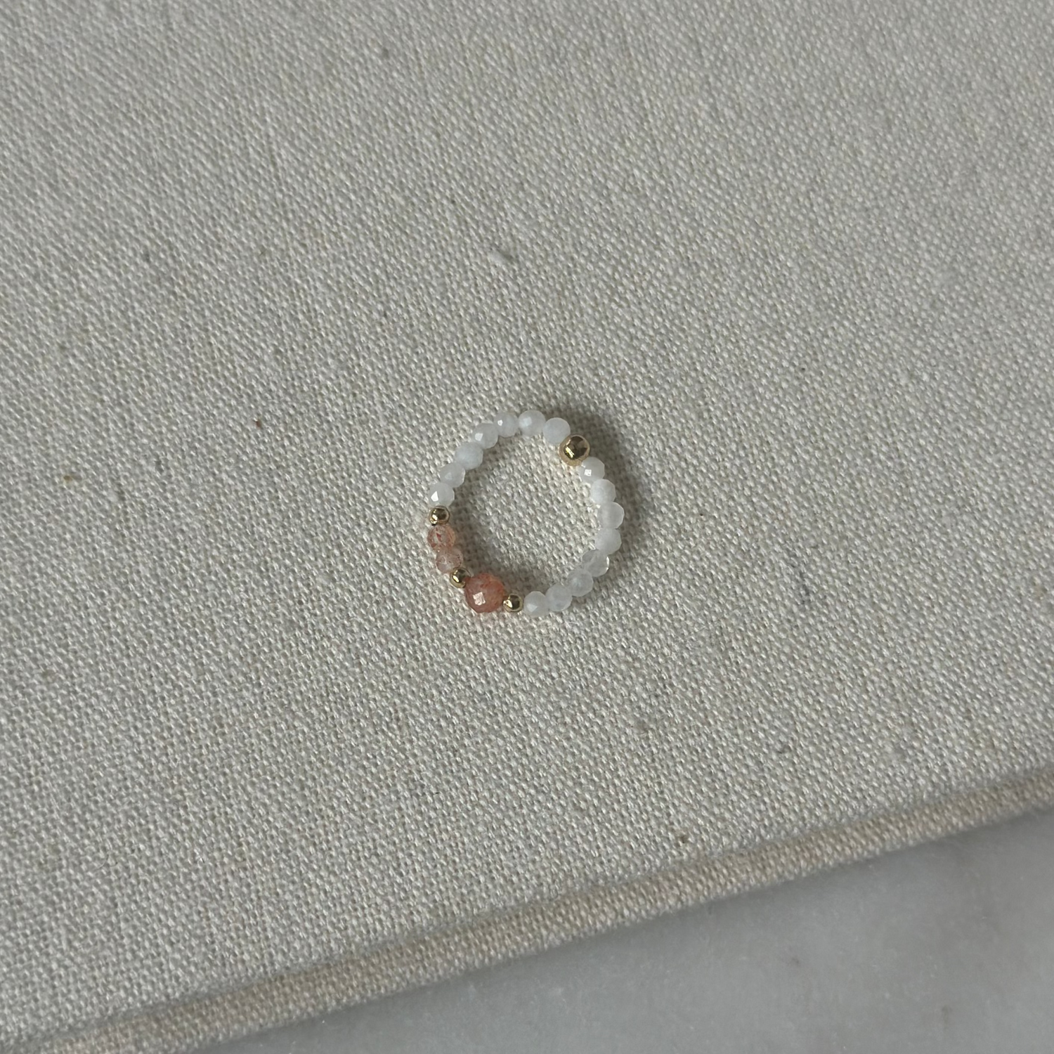 Pierścionek Mocy i Harmonii z naturalnym kamieniem słonecznym i kamieniem księżycowym. Talizman radości, odwagi i emocjonalnej równowagi, który dodaje energii i wspiera intuicję.