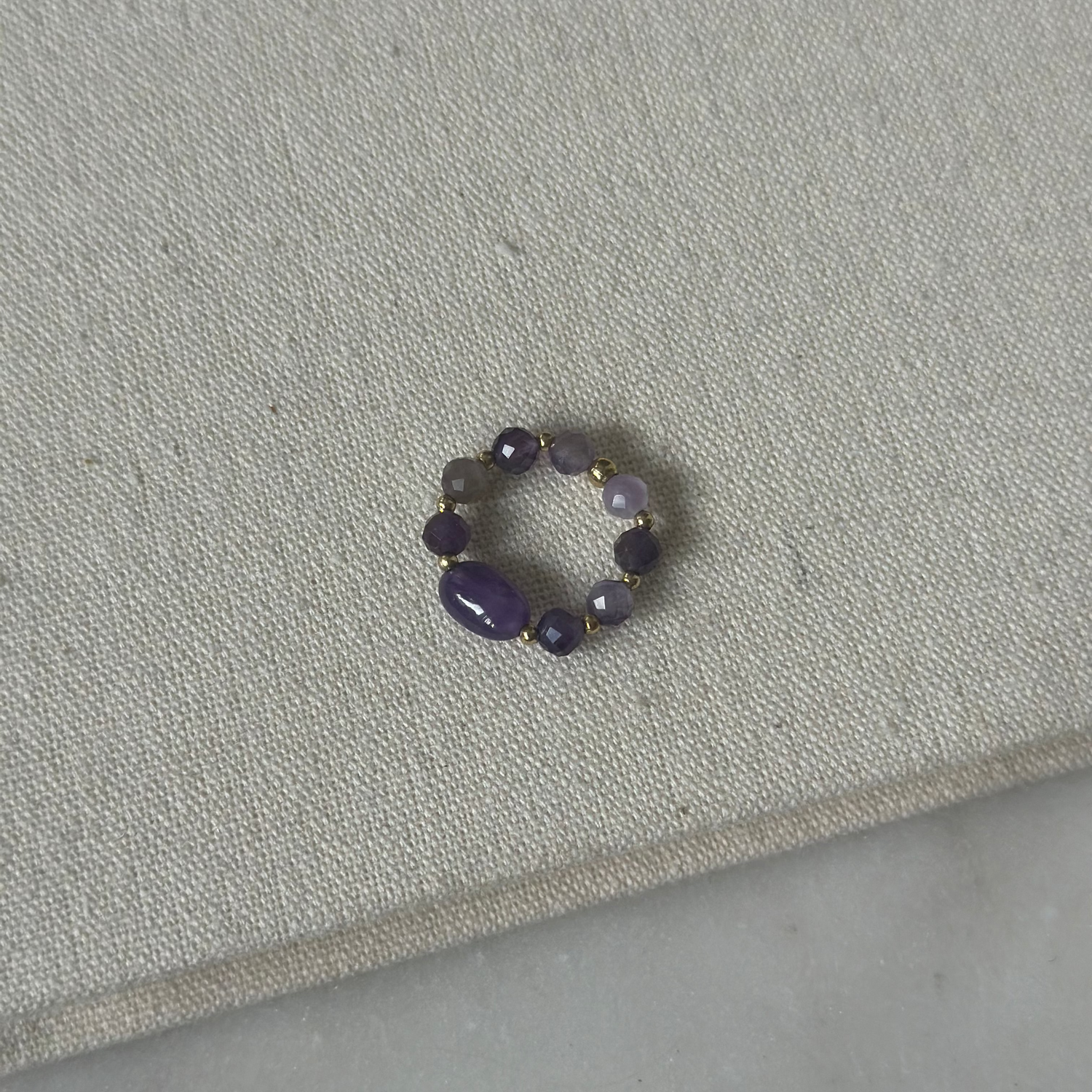 Delikatny pierścionek z naturalnym ametystem – elegancka biżuteria, która wspiera intuicję, spokój i harmonijną energię. Idealny talizman dla osób poszukujących równowagi emocjonalnej i duchowego rozwoju.