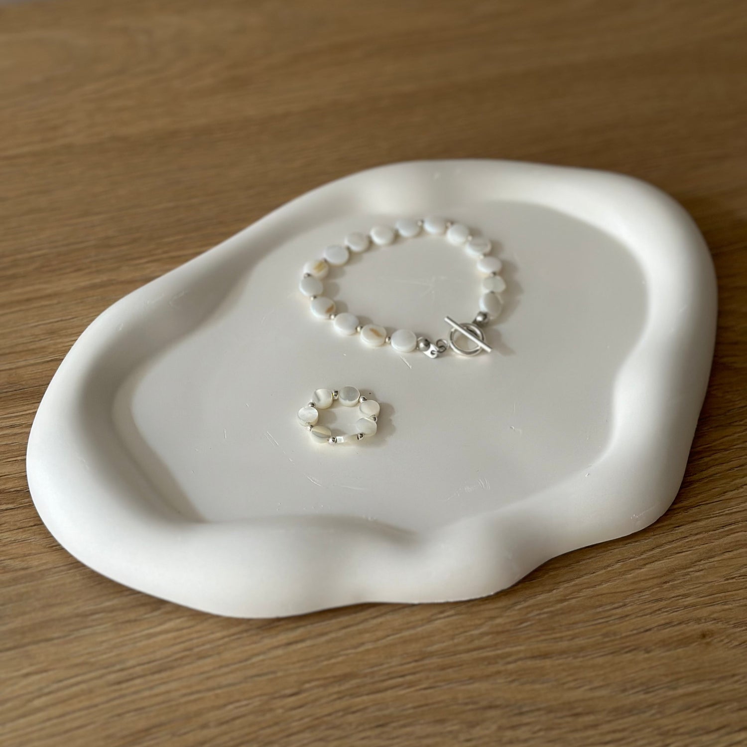 Wprowadź do swojego wnętrza lekkość i miękki akcent dzięki podstawce w kształcie chmurki. Wykonana ręcznie z gipsu, łączy oryginalną formę z funkcjonalnością. Jej subtelnie falowany kontur i dekoracyjny charakter sprawiają, że doskonale sprawdzi się jako podstawka na biżuterię, świeczki, klucze czy drobne akcesoria.