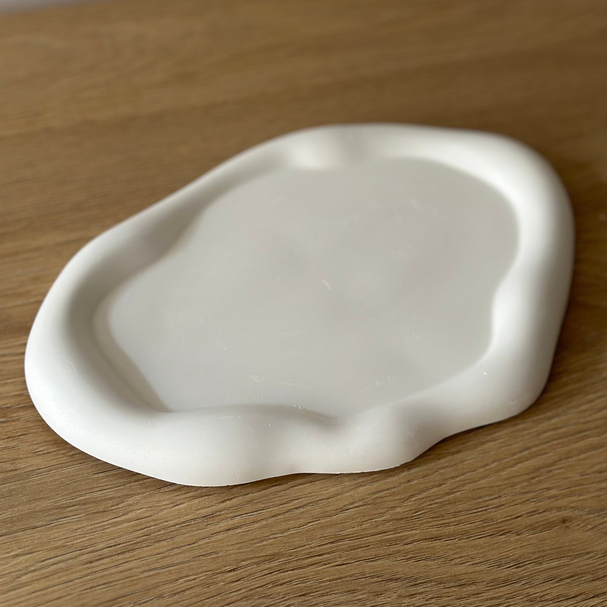 Podstawka dekoracyjna w kształcie chmurki, wykonana z gipsu. Idealna na biżuterię, świeczki, drobiazgi lub jako uroczy element dekoracyjny. Ręcznie wykonana – każda sztuka jest unikatowa.