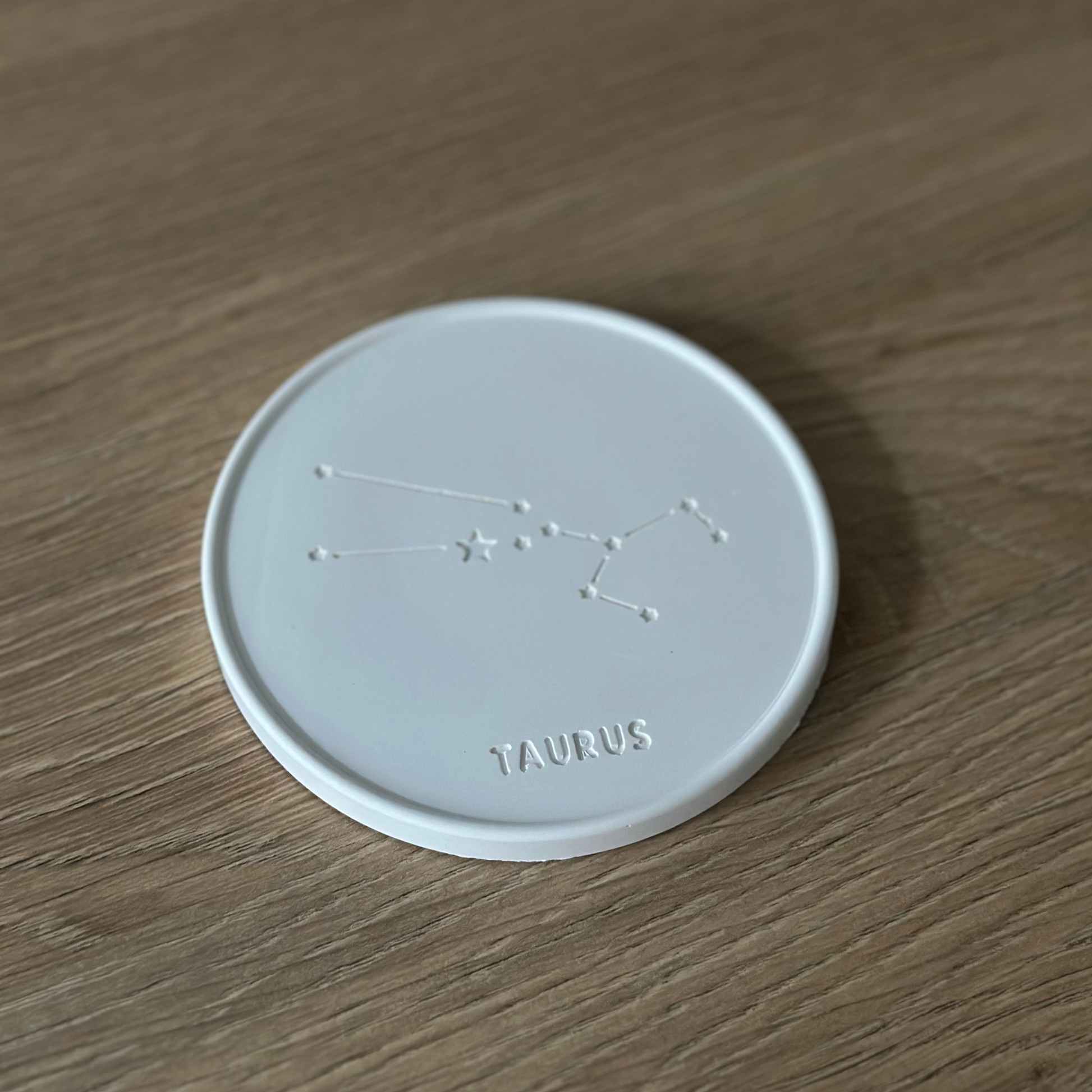 Podstawka zodiakalna Byk to połączenie trwałości i subtelnej estetyki – dokładnie tak, jak energia tego znaku. Symbol Byka został wytłoczony w gipsie, tworząc dekoracyjny, a zarazem praktyczny akcent we wnętrzu.