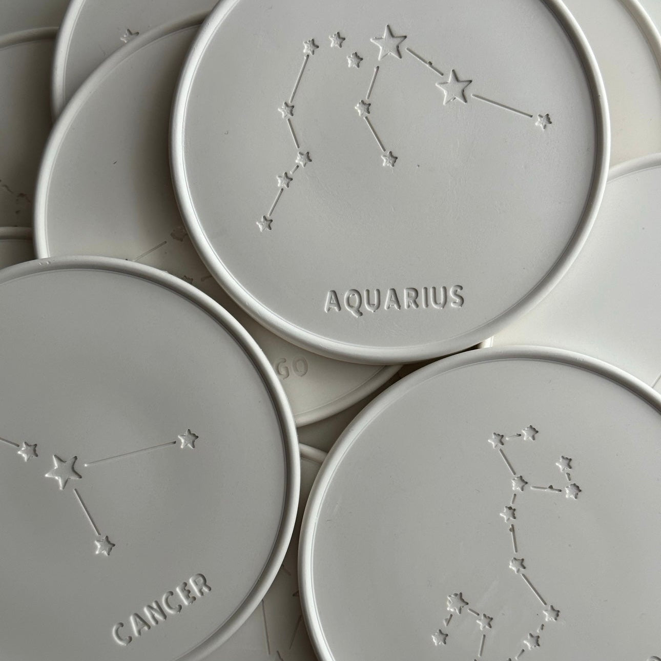 Podstawka zodiakalna Panna to hołd dla tych, którzy widzą piękno w drobnych gestach i uporządkowanej codzienności. Symbol ziemskiego znaku został delikatnie wytłoczony w gipsie, tworząc elegancką formę użytkową.