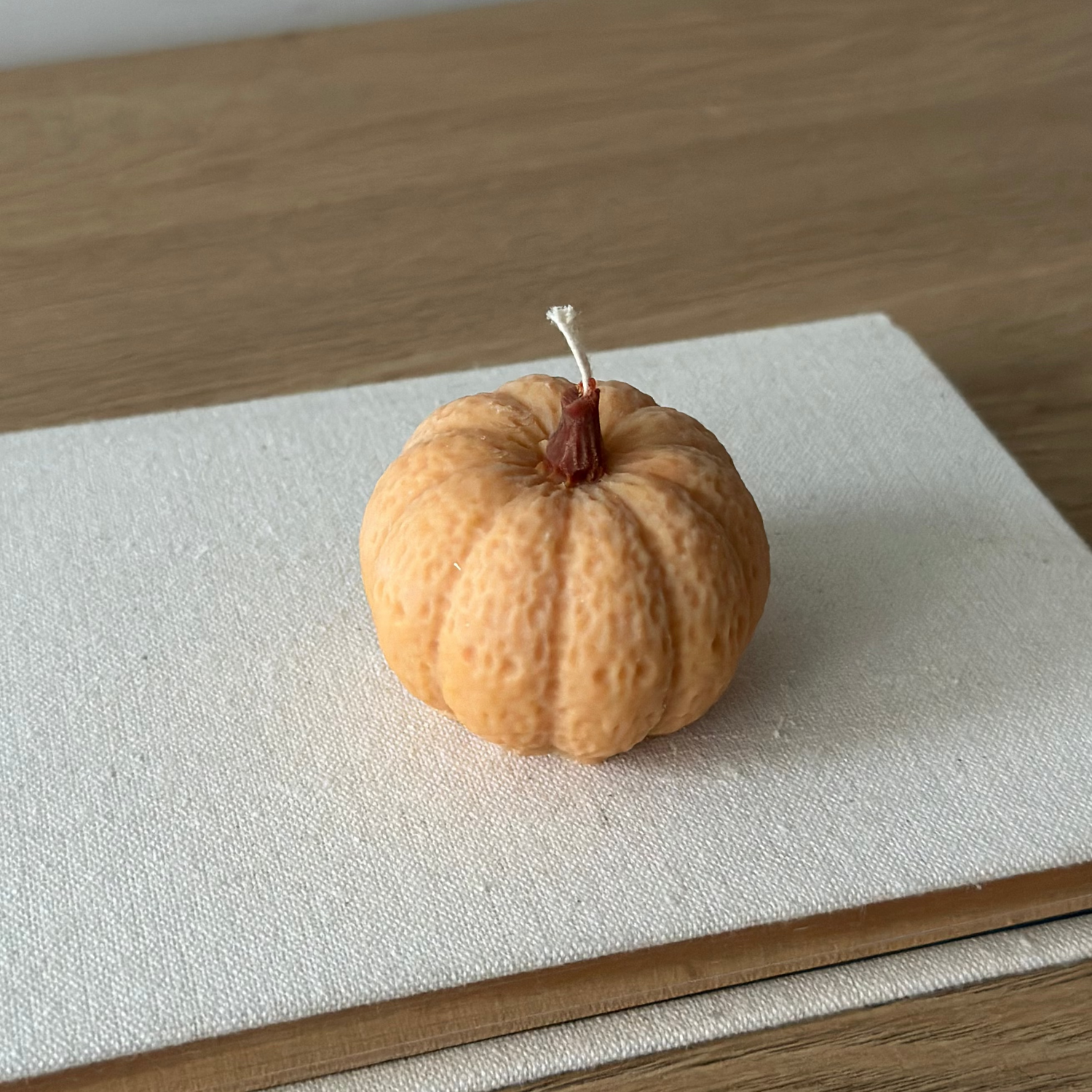 Duża świeca sojowa w kształcie dyni – efektowna dekoracja i źródło ciepłego, jesiennego światła.