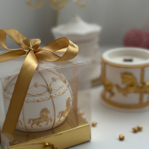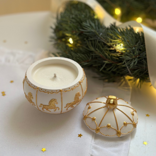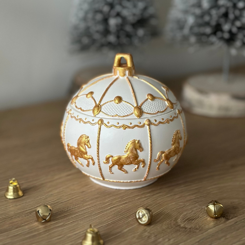 Świeca Sojowa Dekoracyjna - Bombka Świąteczna z Konikami Gold