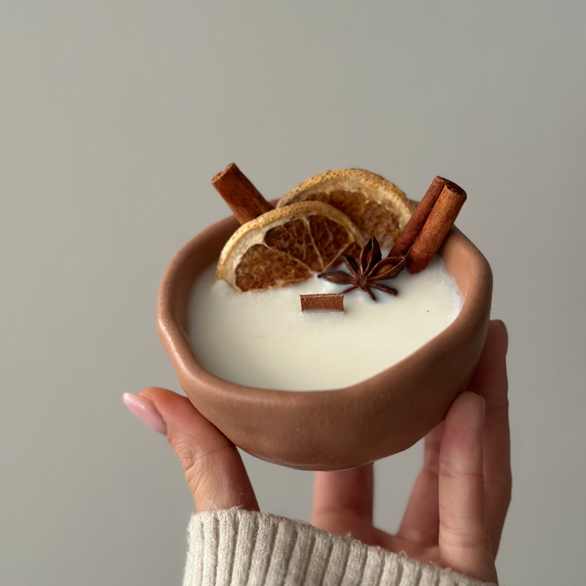 Ręcznie robiona świeca sojowa, która pachnie jak długi, jesienny wieczór pełen spokoju i ciepła🍊🕯️ Zdobiona suszoną pomarańczą, cynamonem i anyżem, wygląda jak mała, naturalna dekoracja. Dostępna z drewnianym lub bawełnianym knotem – idealna, by wypełnić dom ciepłem albo podarować komuś wyjątkowy prezent🎁