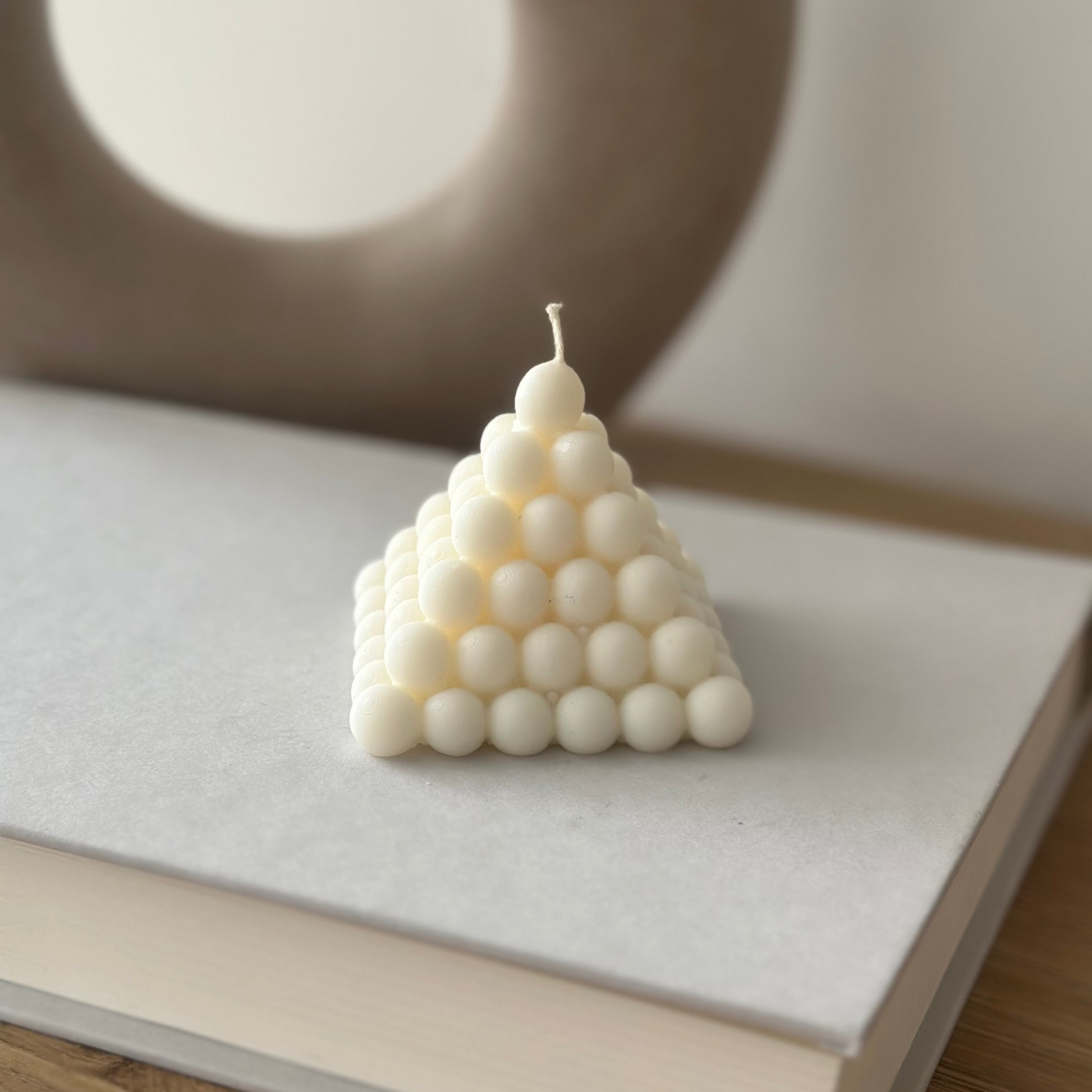 Świeca Piramida to dekoracyjna świeca stołowa w geometrycznym kształcie piramidy, która wprowadza elegancki i nowoczesny akcent do wnętrza. Wykonana z wysokiej jakości wosku, pali się równomiernie i długo. Doskonała do minimalistycznych, nowoczesnych i luksusowych aranżacji, sprawdzi się również jako wyjątkowy prezent.