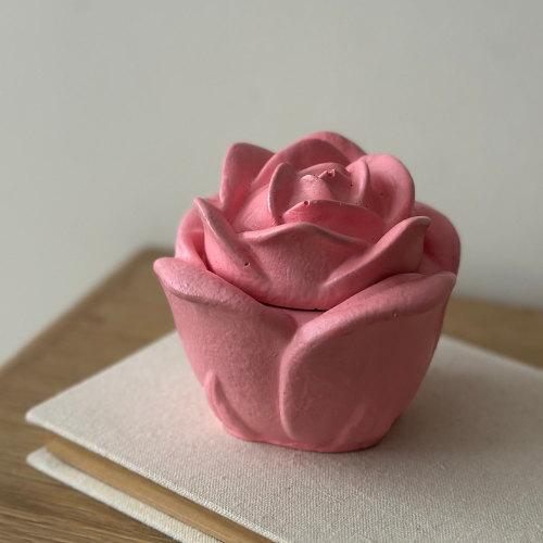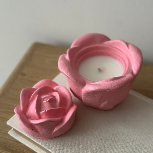 Świeca sojowa Róża to elegancka dekoracja o kwiatowym motywie, która wprowadza do wnętrza romantyczny i subtelny klimat.