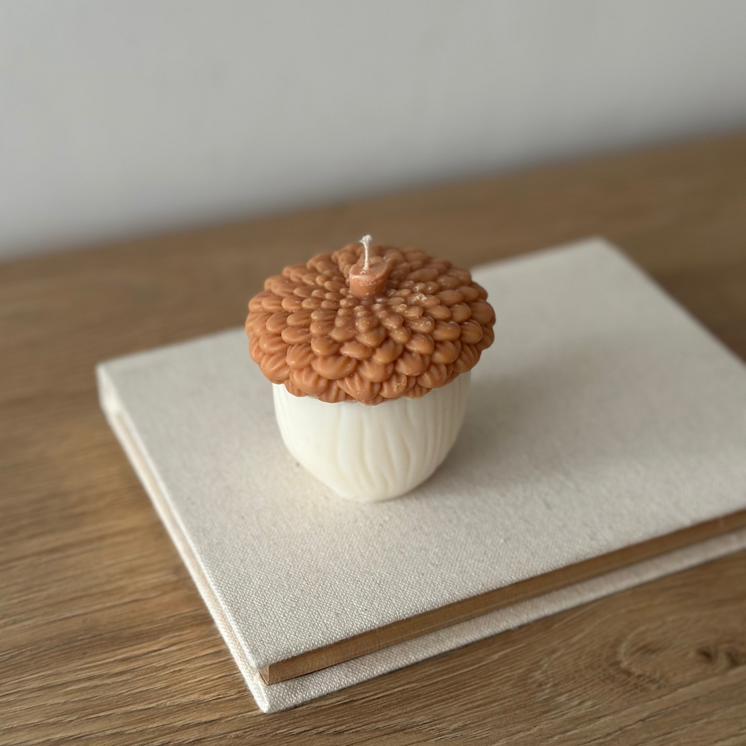 Ręcznie wykonana świeca sojowa w kształcie żołędzia – naturalny wosk i przytulny, jesienny aromat. Tworzy wyjątkowy, ciepły klimat w domu, idealna jako dekoracja lub prezent.