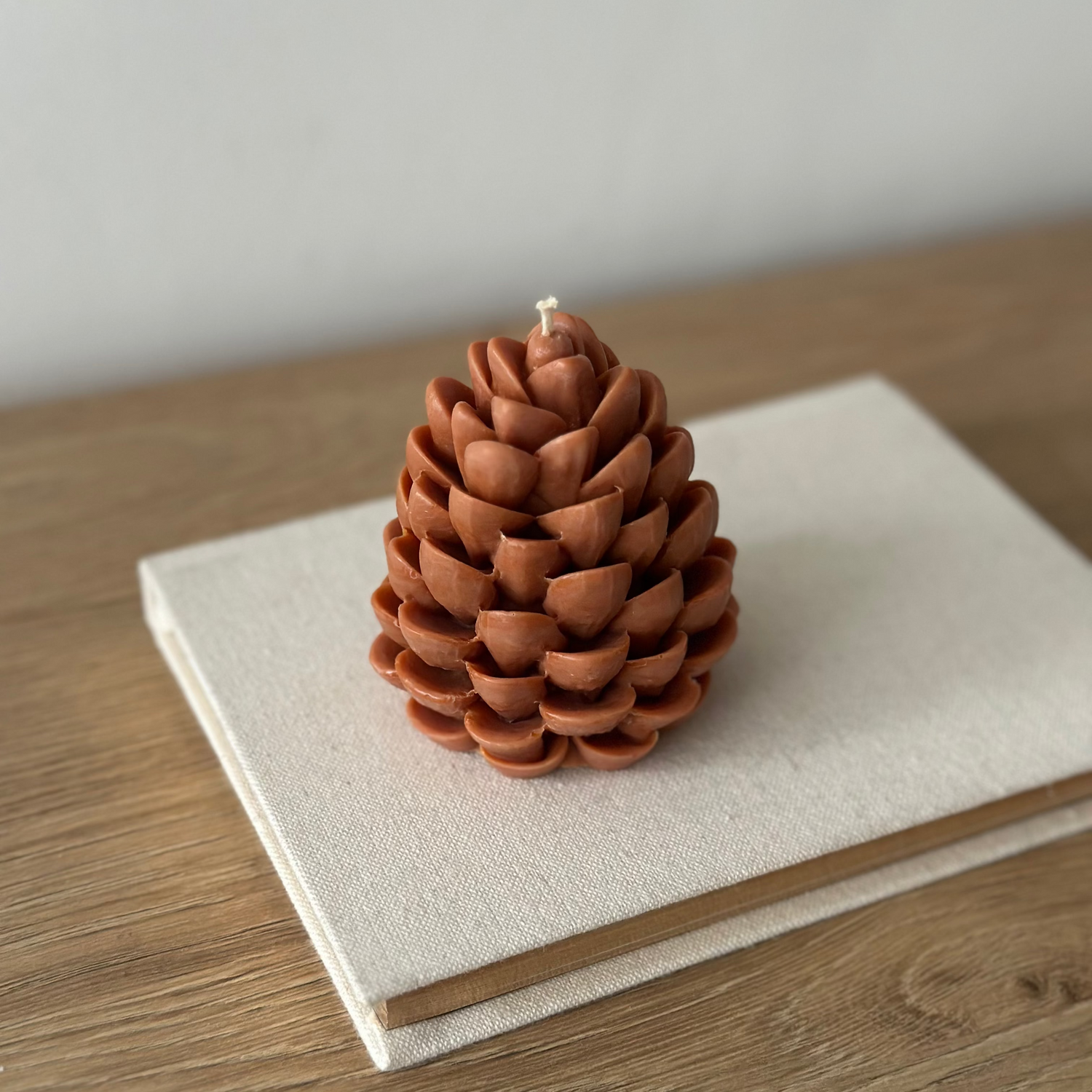 Ręcznie wykonana świeca sojowa w kształcie szyszki. Idealna jako dekoracja domu, jesienny akcent lub oryginalny prezent.