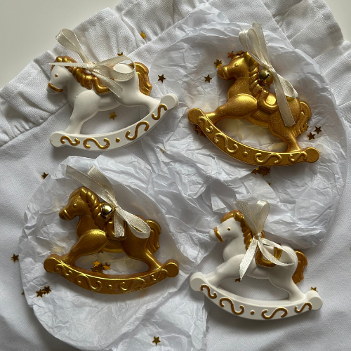 Zawieszka na choinkę Konik wykonana z gipsu to wyjątkowa ozdoba, która wprowadzi do Twojego wnętrza elegancję i świąteczne ciepło. Gipsowy materiał nadaje dekoracji subtelny, delikatny charakter, a staranne detale sprawiają, że konik prezentuje się niezwykle efektownie na choince.