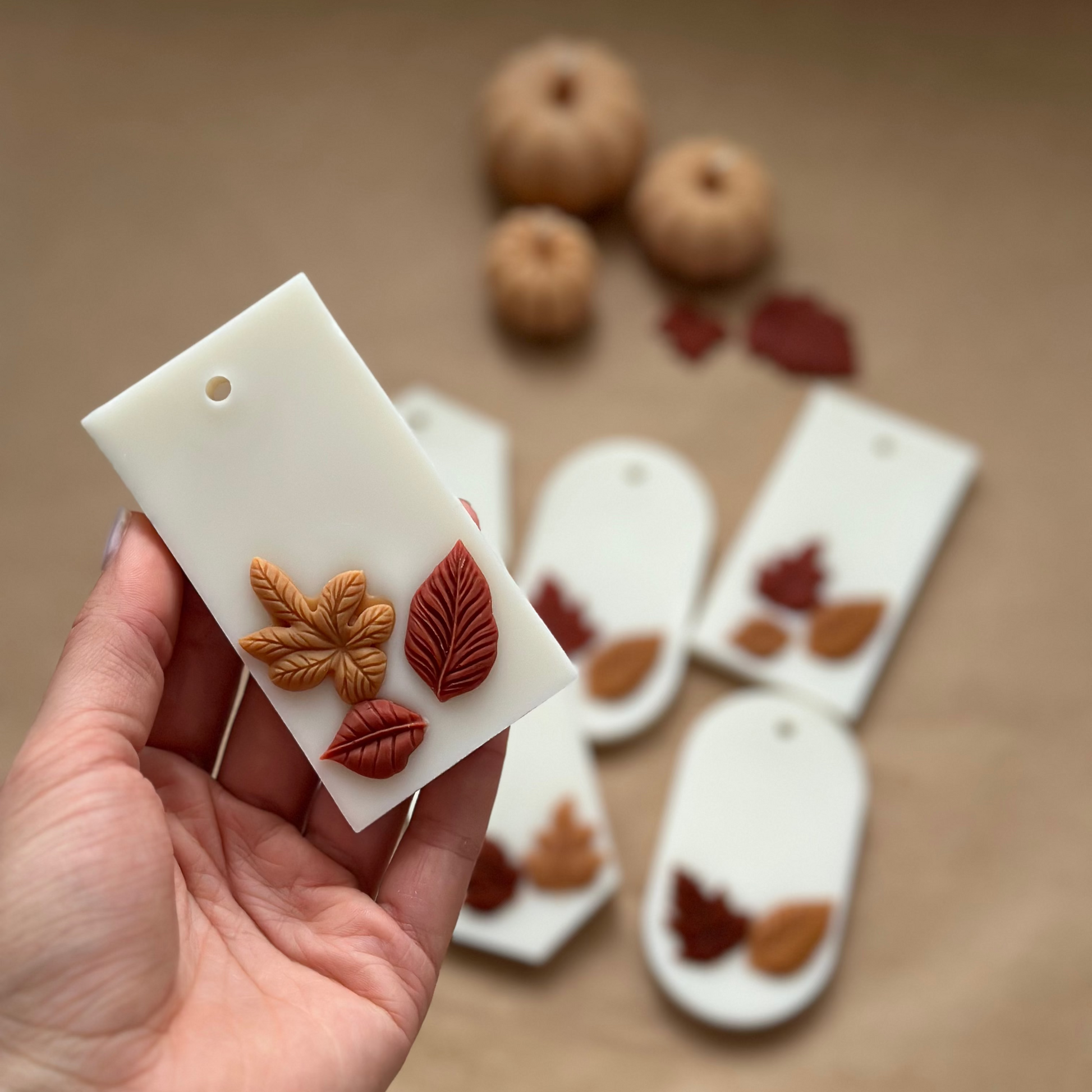 To nie tylko praktyczny produkt, ale także piękna ozdoba – jesienne liście zatopione w wosku czynią każdą zawieszkę niepowtarzalną. Idealna również jako drobny prezent lub dodatek do upominku.
