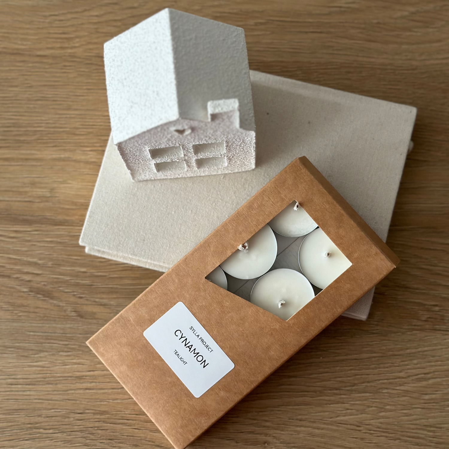 Zestaw - Gipsowy Domek do Tealight & 8 Sojowych PodgrzewaczySojowe Świece Tealight, Podgrzewacze 8 szt.