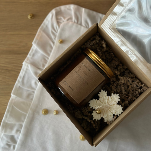 Zestaw został starannie umieszczony w eleganckim pudełku prezentowym, dzięki czemu jest gotowy do wręczenia jako prezent. To idealny upominek dla osób ceniących estetyczne świece, zimowe dekoracje i wyjątkowy świąteczny klimat.