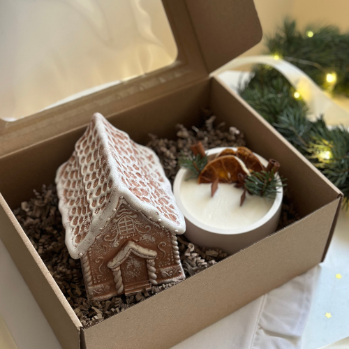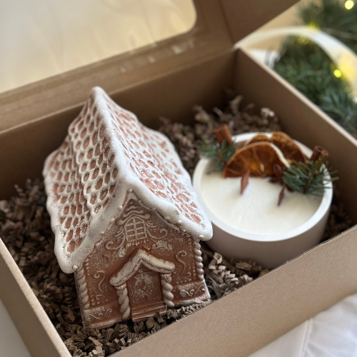 Zestaw Prezentowy Świąteczny: Świeca Domek Piernikowy i Świeca Korzenna