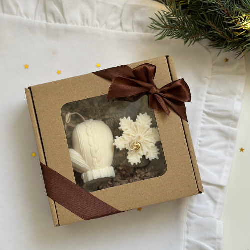 Zestaw Prezentowy Świąteczny – Świeca w Kształcie Rękawiczki i Śnieżynka